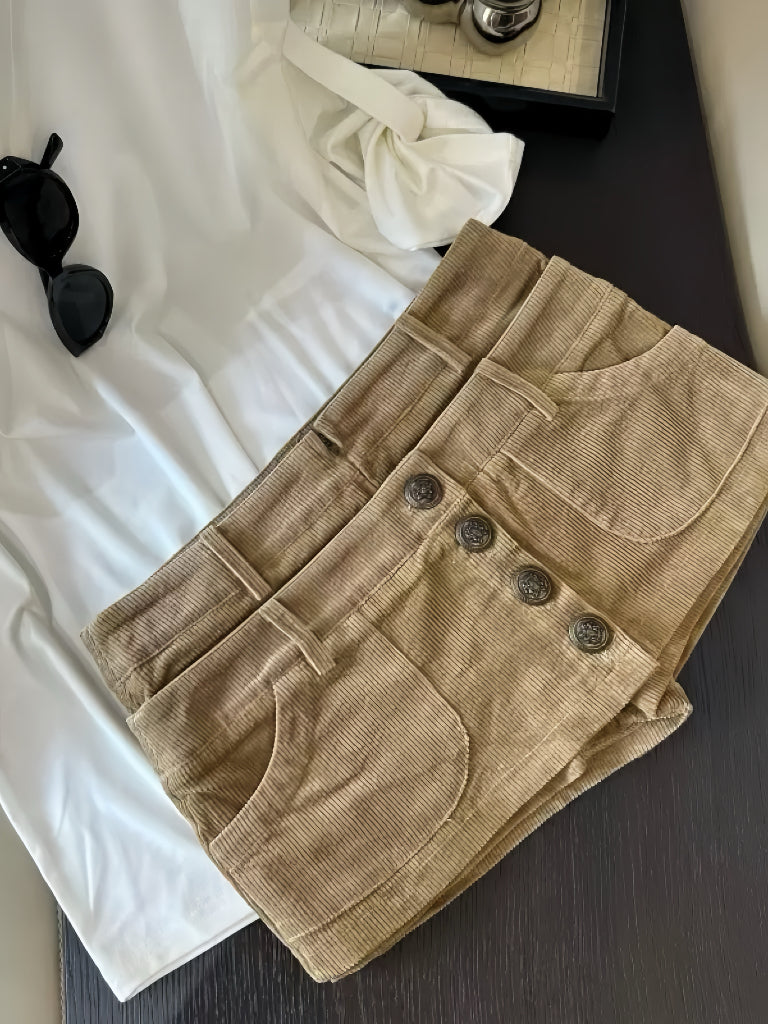 Y2K fake two-piece breasted MINI Skirt in Khaki