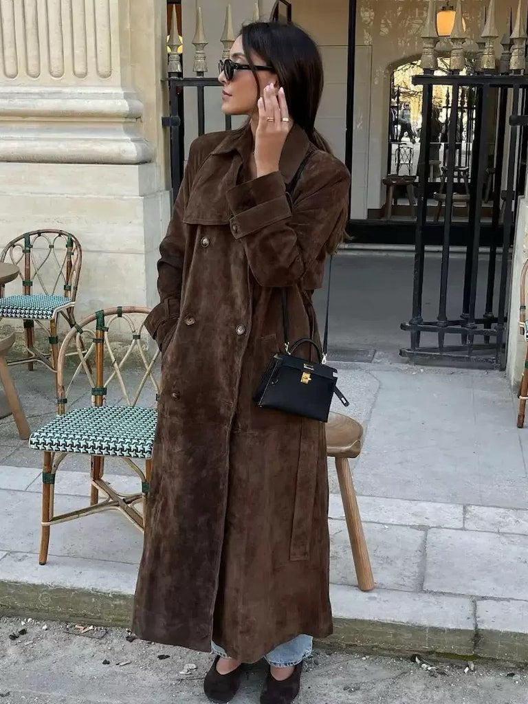 Oversize Double Breasted Outerwear Autumn Street Suede Coat