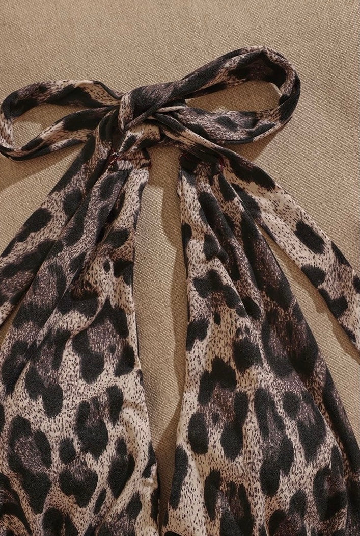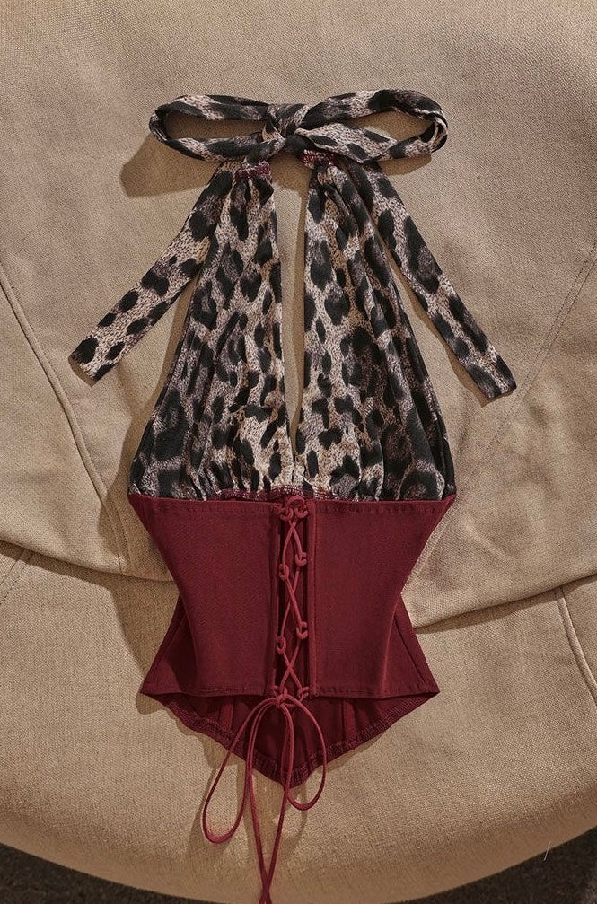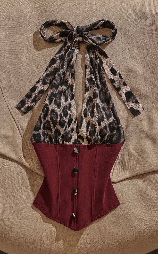 Y2K leopard print spliced fishbone halter top